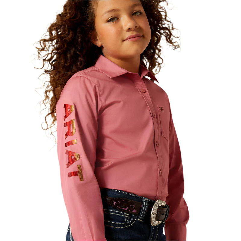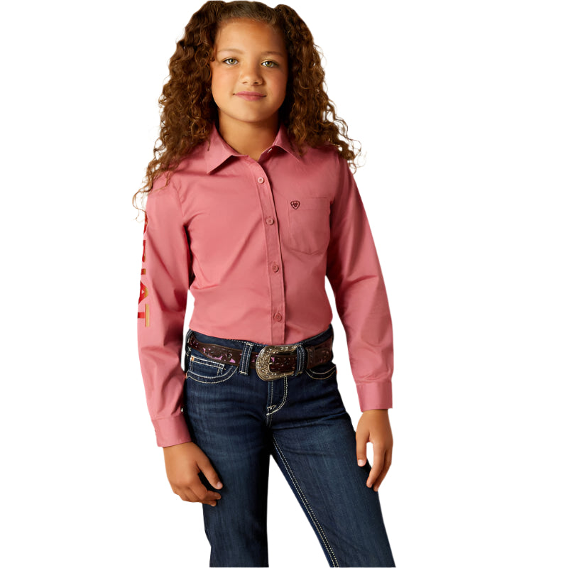 Chemise Ariat Team Kirby pour enfant. La mini version de la chemise préférée de maman possède toutes les mêmes caractéristiques de performance. Elle aura l'air et se sentira comme une pro à chaque fois qu'elle le mettra.