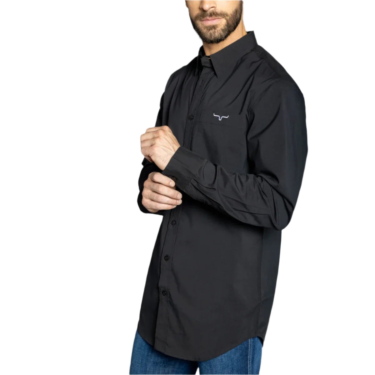 Chemise Kimes Ranch Team noir pour hommes. Faites partie de l'équipe Kimes Ranch avec cette chemise exclusive de l'équipe KR. Conçu pour les performances aux plus hauts niveaux, ce haut a été conçu avec la contribution des athlètes KR et comprend la technologie Coolmax®/Cooltex®.