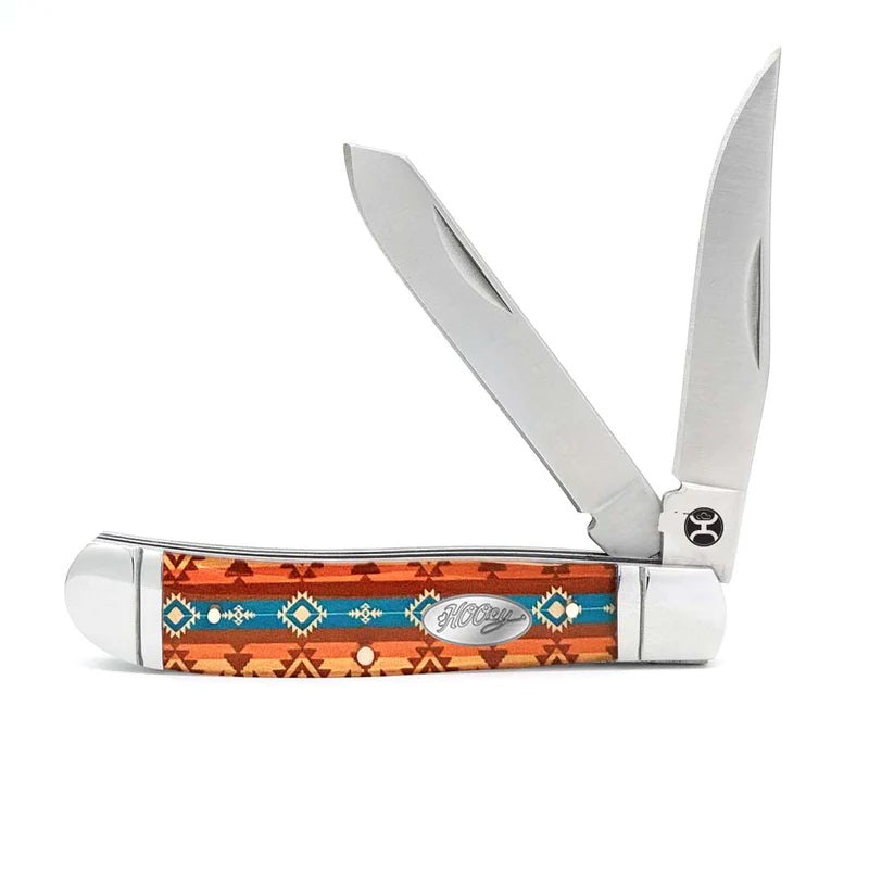 Couteau à lame double de Hooey. Longeur de 4 1/4". Lame  de 3 1/4". Motif Aztec.