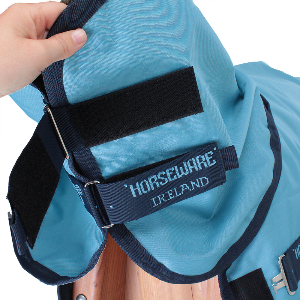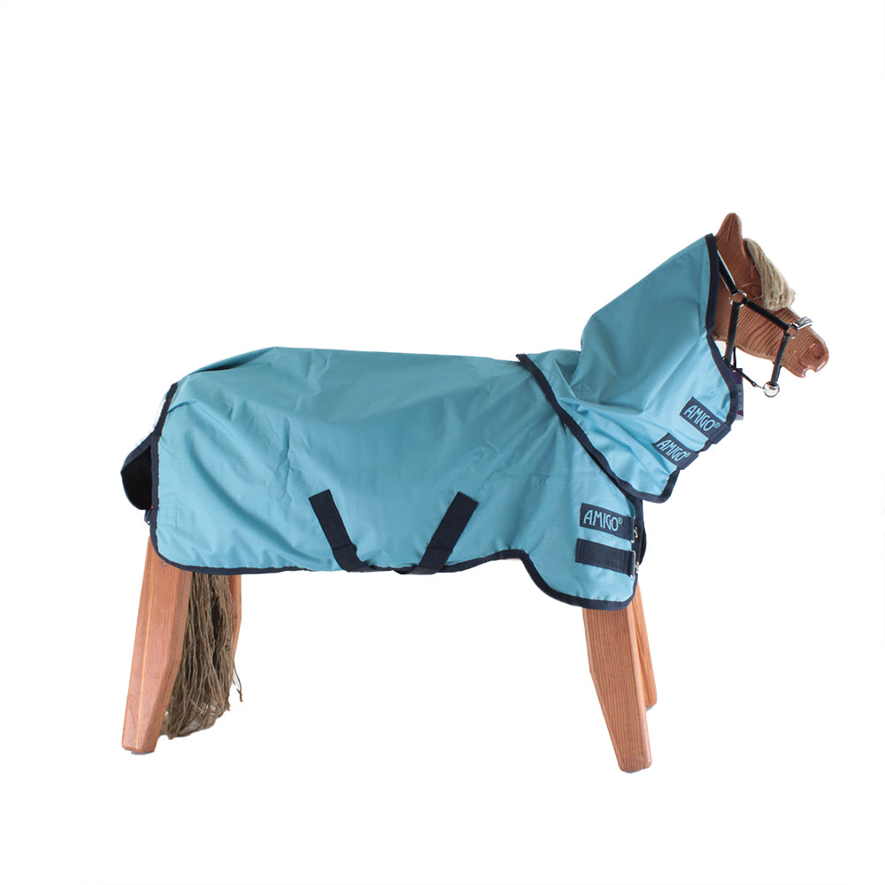 La couverture Amigo Hero 6 Turnout est une couverture d'extérieur pour les plus petits tel que les shetlands. L’Amigo Turnout est spécialement taillée pour les chevaux miniatures et les mini-poneys. Avec cette couverture, votre poney sera parfaitement protégé de l’humidité, du vent et du froid.Tout comme la couverture pour les chevaux, la couverture d'extérieur est fabriquée en polyester 600D. Elle est imperméable. La couverture est aussi très confortable. La couverture n'est pas doublée et est donc la couverture de pluie idéale. La doublure intérieure en polyester est douce. Fixation Dans la zone du poitrail, la couverture est fermée avec un double crochet en métal. Sur le ventre, elle est fermée avec deux ceintures abdominales croisées et réglables et une sangle complète la couverture. Couleur: Bleu Delphinium.
