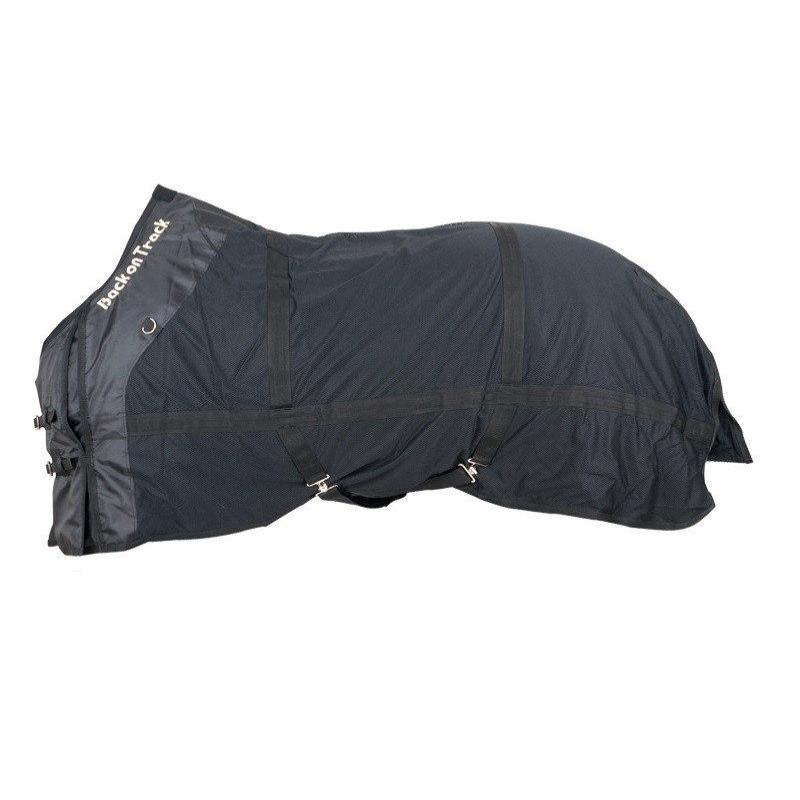 Produit multifonctionnel. Durant les mois d'été, la couverture à filet représente le produit optimal en raison de son aération procurée par les mailles filets robustes et très espacées qui recouvrent le tissu céramique. Peut servir de couverture de transport ou de couverture séchante en écurie pendant la saison chaude. Elle peut être portée avant l'exercice ou pendant la compétition pour réchauffer les muscles, ou bien après l'exercice et la compétition pour mieux récupérer après l'effort. Porter cette couverture permet au cheval de bénéficier de l'effet Back on Track sur les muscles du cou et de la gorge. La couverture est dotée d'une doublure en tissu polypropylène infusée avec de la poudre de céramique fondue Welltex. L'extérieur du filet à mailles permet d'obtenir une aération maximale. Équipée d'une double fermeture de poitrail et de sursangles croisées. Large rabat de queue et attaches pour courroies de cuisses.