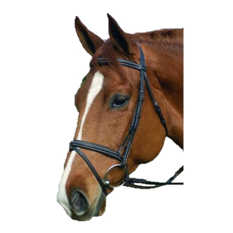 Ensemble bride et rênes HDR Pro Event en cuir véritable. Rênes en nylon. Couleur: havana.