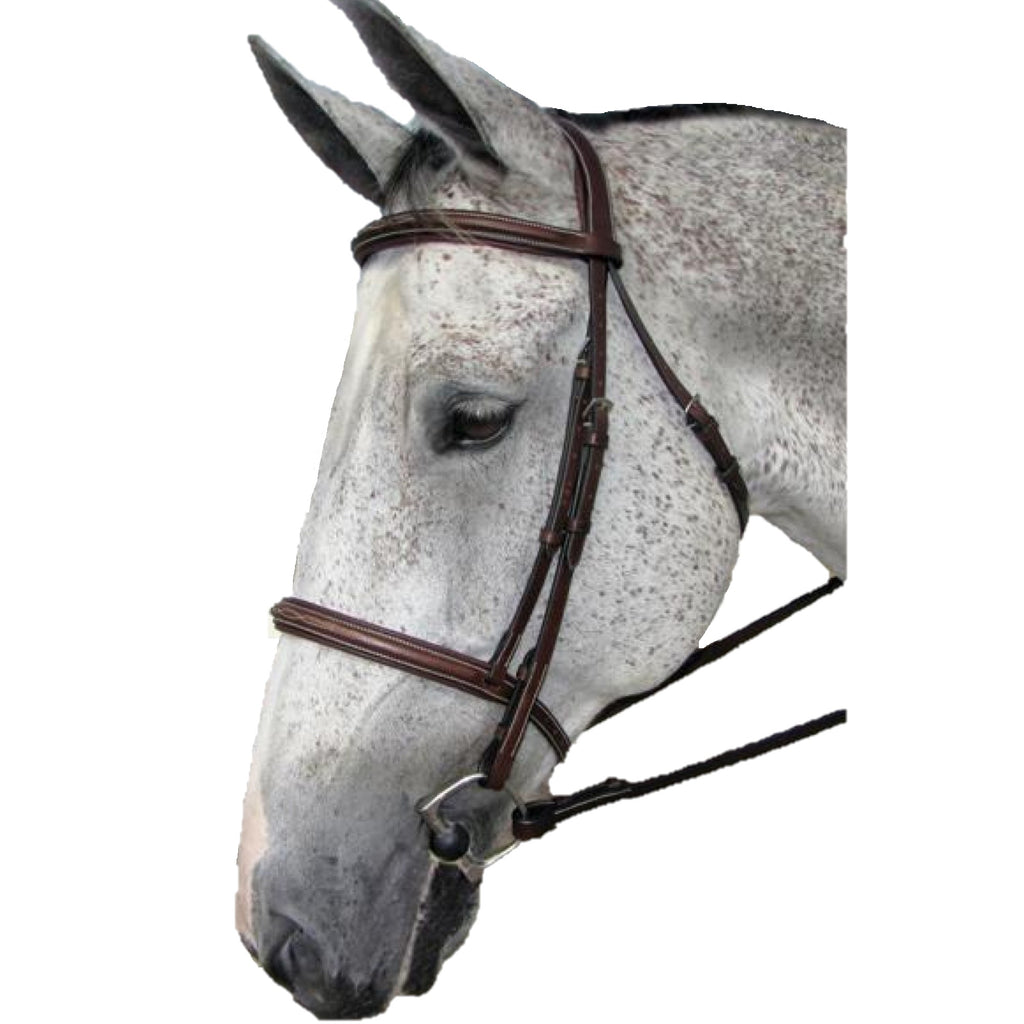 Ensemble bride et rênes Pro Fancy Mono Crown HDR en cuir véritable. Rênes tressées. Couleur Australian Nut.