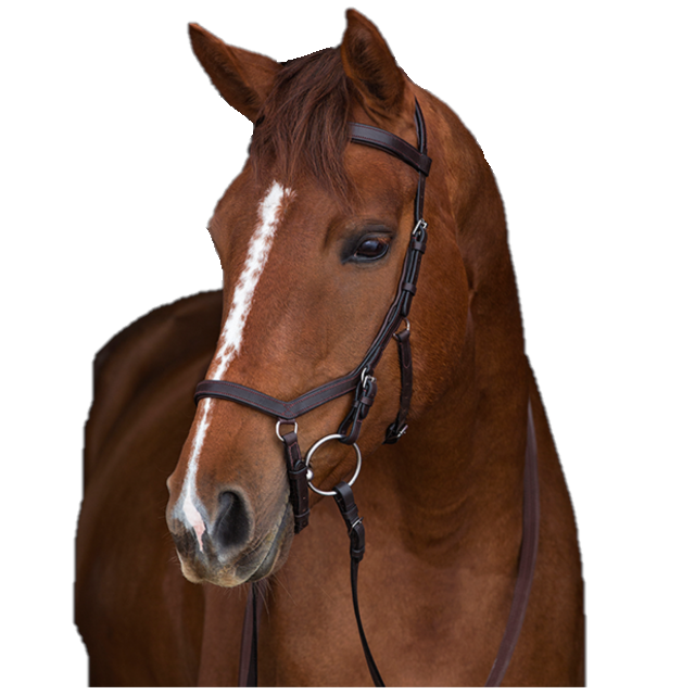 Ensemble de bride et rênes Mickliem Rambo. La bride est spécialement conçue pour s'adapter au crâne du cheval, évitant ainsi les point de pressions sur les régions sensibles. Fabriqué dans un cuir de qualité. Couleur dark havana.