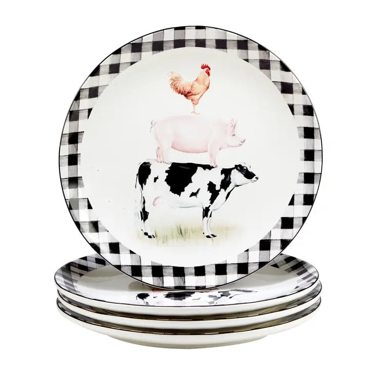 Ensemble de quatre assiettes de 11" "On the Farm".