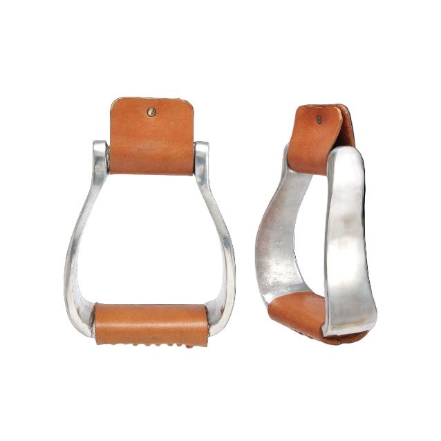 Soulagez vos genoux et vos chevilles grâce à ces étriers incurvés uniques. Leur conception en aluminium incurvé et décalé permet un positionnement plus confortable du pied. Semelle et renforts en cuir recouverts de cuir anti-usure. Idéaux pour l'équitation western au quotidien ! Vendus par paire.