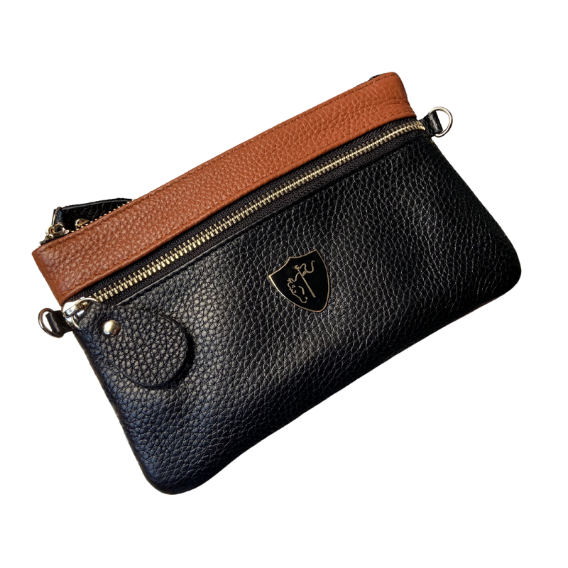 Étui Black Knight en cuir véritable pour cavalier. Cet étui a été créé pour les cavaliers portent des pantalons d'équitation car ceux-ci n'ont pas beaucoup d'espace pour le téléphone ou l'argent. Ce magnifique étui est idéal pour ranger votre téléphone, vos cartes et votre argent.