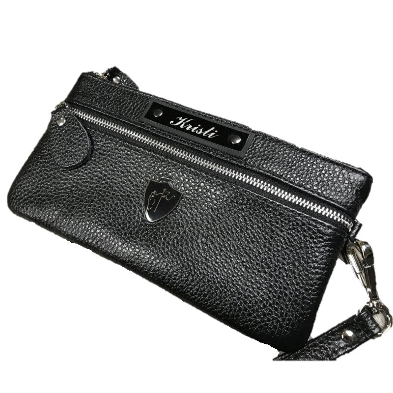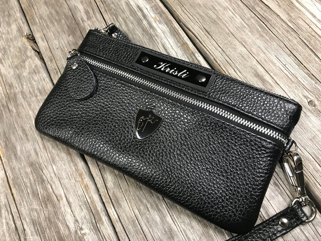 Étui Black Knight en cuir véritable pour cavalier. Cet étui a été créé pour les cavaliers portent des pantalons d'équitation car ceux-ci n'ont pas beaucoup d'espace pour le téléphone ou l'argent. Ce magnifique étui est idéal pour ranger votre téléphone, vos cartes et votre argent.