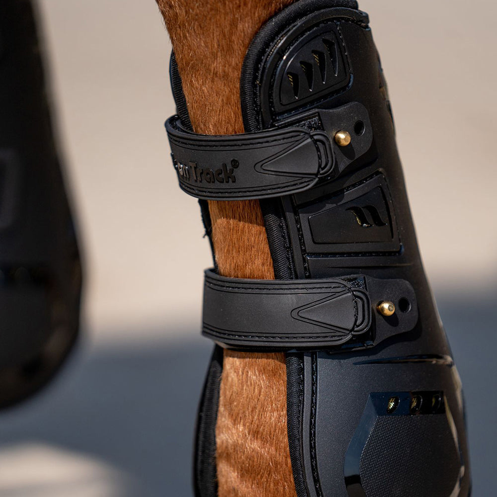 Les nouvelles guêtres Airflow Tendon de Back on Track sont conçues pour protéger votre cheval des chocs tout en encourageant la liberté de mouvement, le tout dans une botte de travail légère ! La chaleur libérée par la jambe de votre cheval se déplace à travers le néoprène ventilé Air-Tech qui à son tour la distribue à travers le tissu en maille 3D tandis que la ventilation dans la botte aide à expulser la chaleur et à apporter de l'air frais.