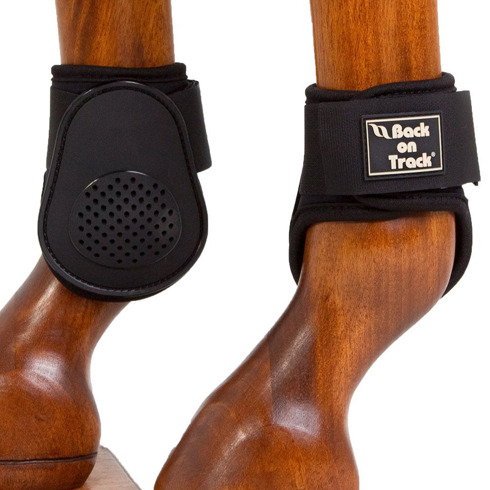 Les guêtres postérieures Royal de Back on Track® sont créés non seulement pour aider à protéger la région inférieure de la patte du cheval contre les coups et les éraflures, mais aussi pour fournir une thérapie infrarouge apaisante et soulageant la douleur. Le membre postérieur peut être sujet à diverses blessures, notamment celles associées à des activités rigoureuses comme le saut d'obstacles. Pour plus de confort et de protection, les guêtres Royal associent une enveloppe extérieure en TPU moulée et résistante à un intérieur en néoprène épais et doux (perforé pour une ventilation/circulation d'air supplémentaire) et doublé du tissu révolutionnaire Welltex® infusé de céramique. Une conception légère rend les guêtres Royal durables faciles à utiliser. Couleur : noir.