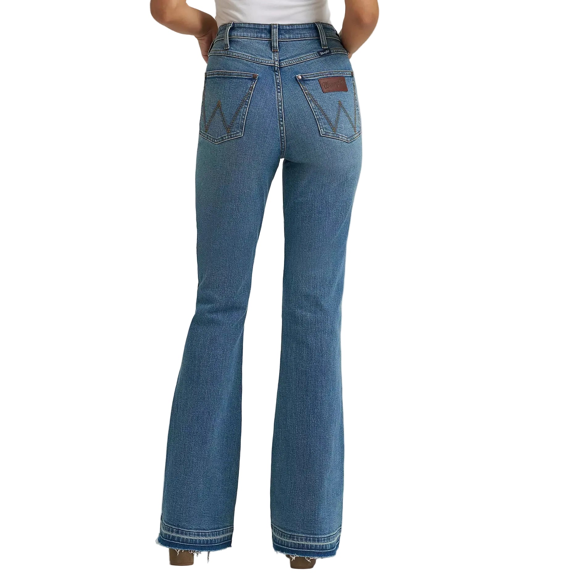 Avec sa silhouette élancée et flatteuse, le jean évasé taille haute Wrangler Retro Bailey Flare Lana vous assure un confort optimal tout au long de la journée grâce à son tissu légèrement extensible. Ce modèle tendance présente un ourlet brut et une ouverture évasée spectaculaire qui met en valeur vos bottes ou talons préférés. De plus, il arbore des détails western emblématiques tels que les poches ornées d'un « W » cousu, un patch en cuir véritable et le logo corde classique.
