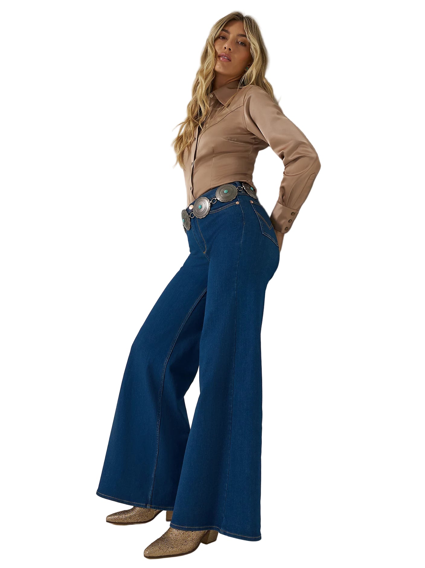 Ouvrez la voie avec le jean large Cheeky Wrangler® x Lainey Wilson. Sélectionné par l'artiste country Lainey Wilson, ce jean large offre une silhouette trapèze ultra-satisfaisante qui épouse vos courbes et s'élargit sous les hanches pour une jambe plus ample. Confectionné dans un mélange de coton confortable et parfaitement extensible, il vous permet de profiter de chaque instant en toute confiance.