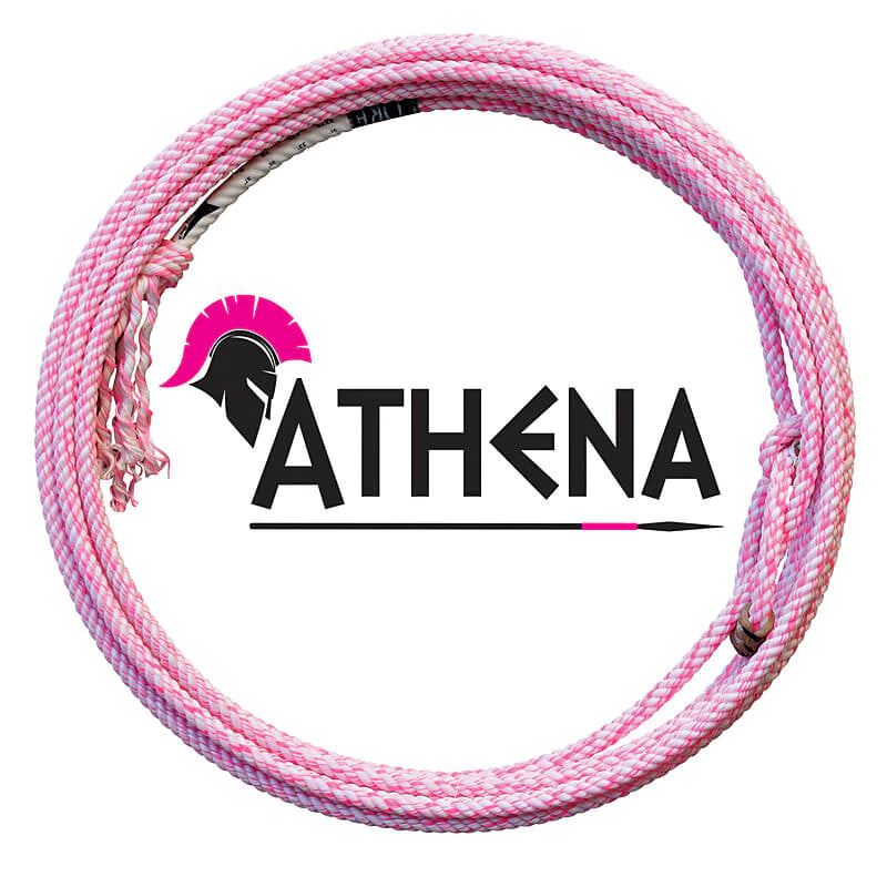 Lasso Athena Breakaway de Fast Back. L'Athena est un rope à quatre brins avec un noyau en polyéthylène teintée en rose. Ce noyau en polyéthylène offre un poids accru en pointe et une durabilité optimale. Robuste et résistante, ce lasso est performant dans toutes les conditions.