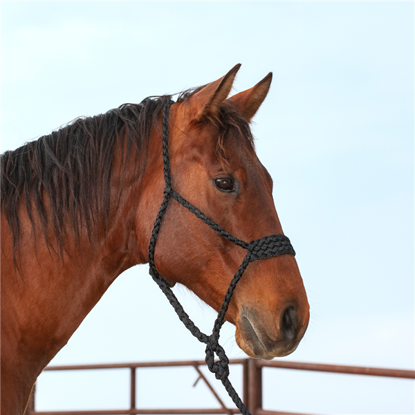 Licol et laisse en corde de Classic Equine. Laisse de 8'. Licol grandeur standard. Couleur noir.