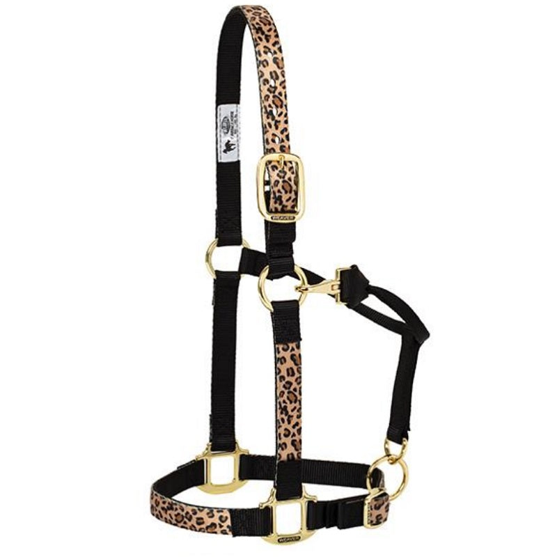 Licol en nylon et brass d'une largeur de 1'' de Weaver Leather. Têtière et muserole ajustables. Small : 500-800lbs, Average : 800-1100 lbs, Large : 1100-1600 lbs.