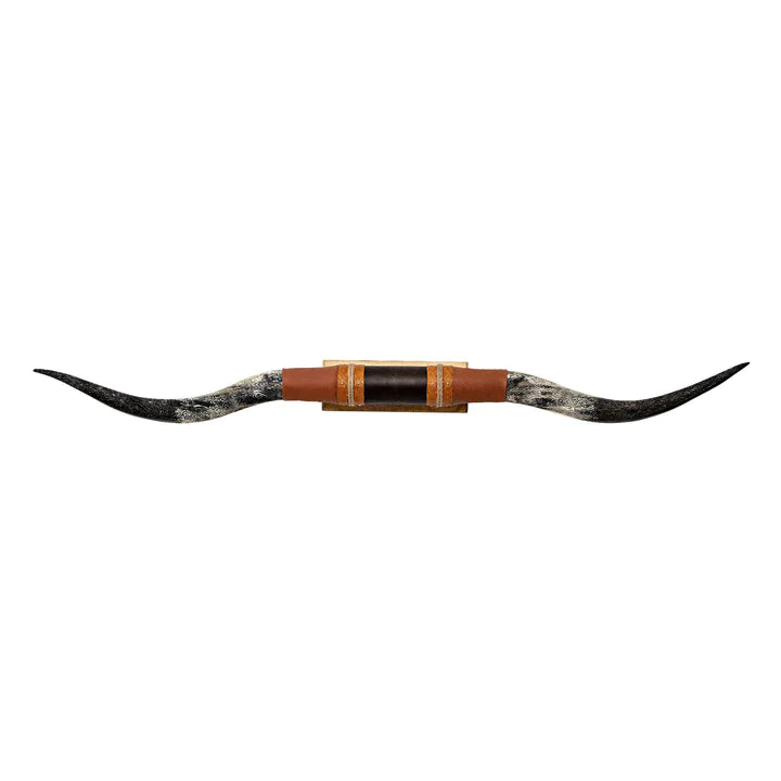 Véritable cornes de Longhorn gravés à la main. Centre en cuir brun. Largeur entre 71"-82". Étant donné qu'il s'agit d'un produit d'origine animal et traité à la main, il peut y avoir de légères différences dans les couleurs et les tailles. Pour ces mêmes raisons, aucun remboursement ne sera offert si un bris survient après l'achat.