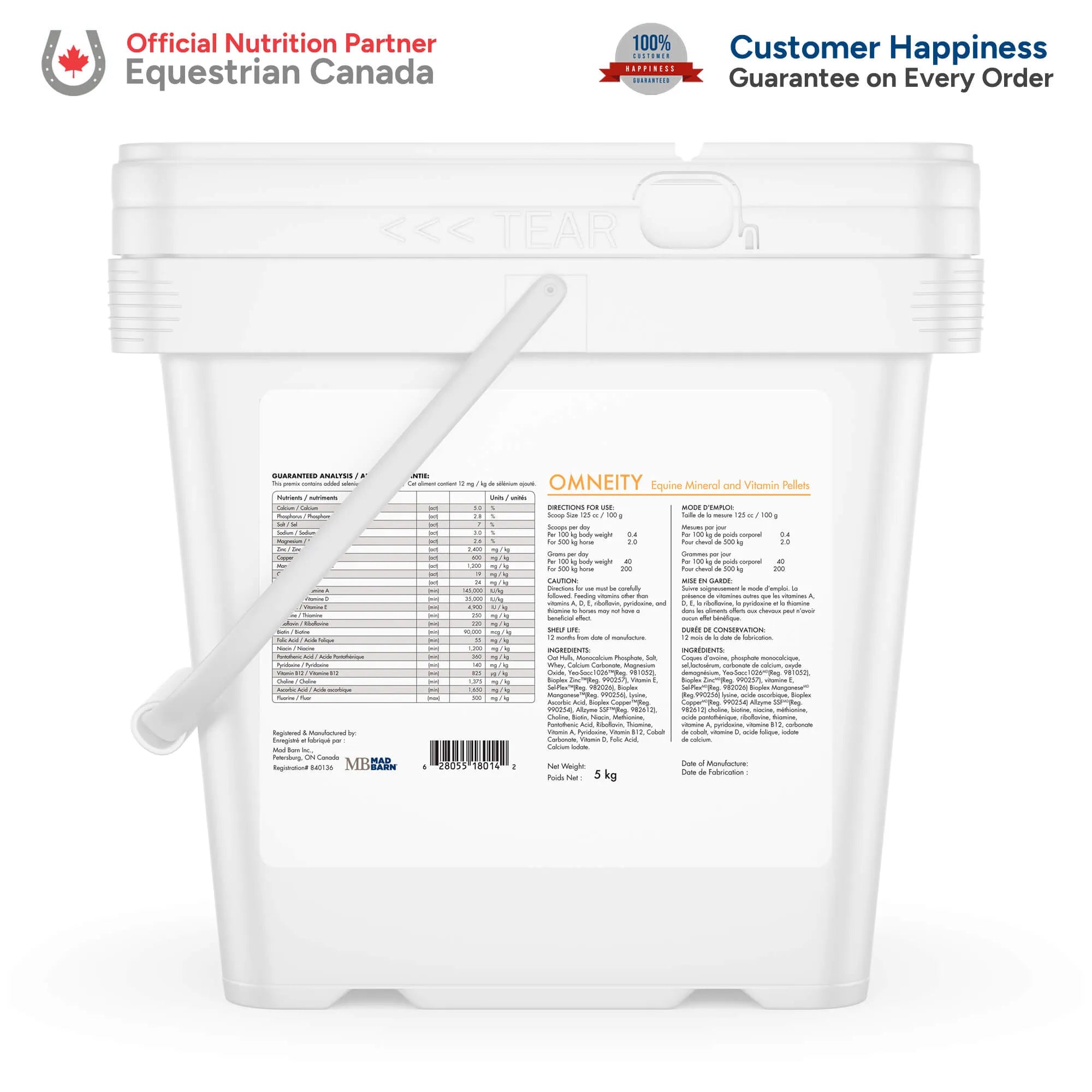 Omneity® P est un complément granulé de vitamines et minéraux équin tout-en-un, professionnellement formulé avec des oligo-éléments 100 % organiques, des vitamines B, des acides aminés, des enzymes digestives et de la levure. Vous pouvez être sûr que votre cheval reçoit tout ce dont il a besoin grâce à cette formule complète et équilibrée.