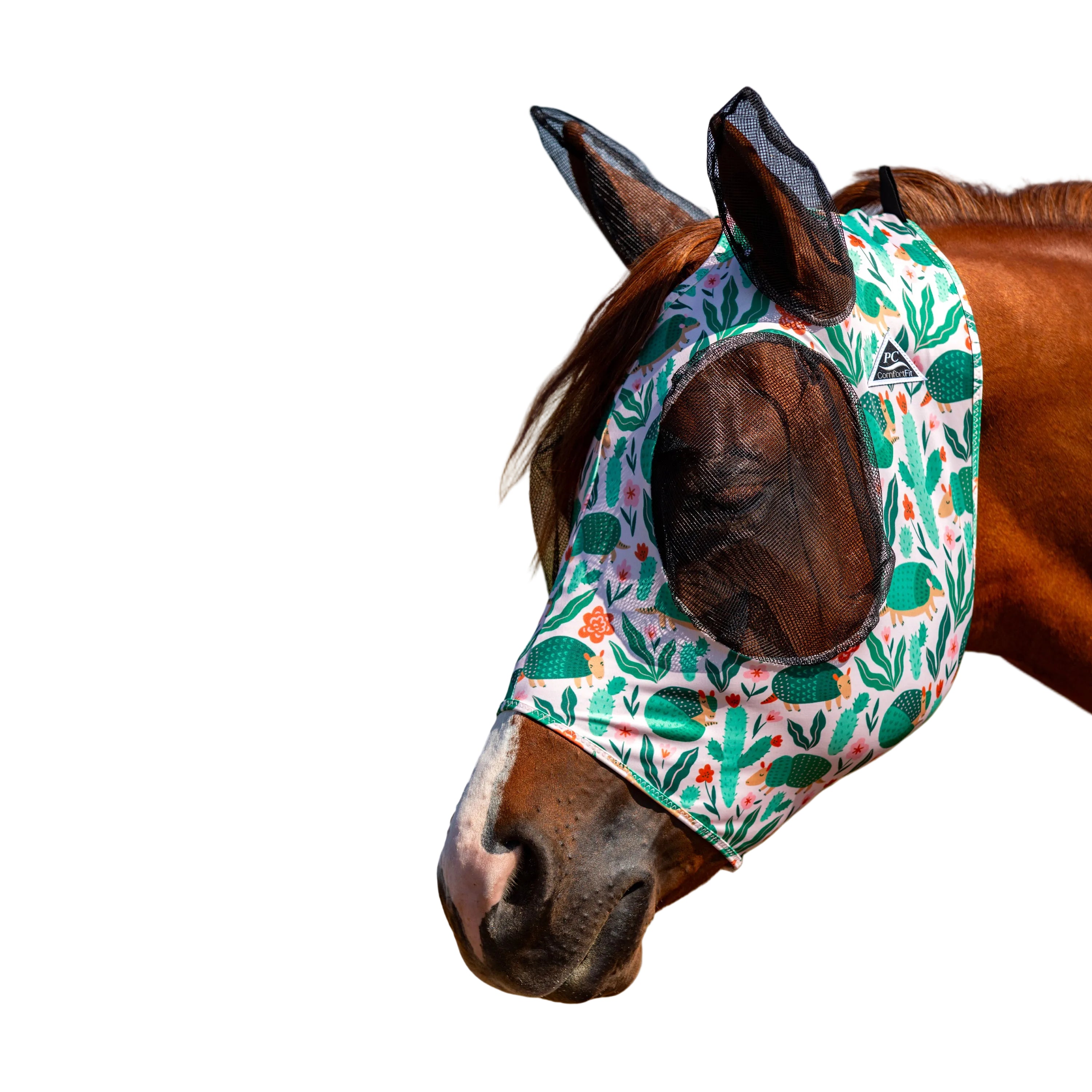 Conçu pour le confort de votre cheval! Le lycra lisse et extensible s'adapte au visage de votre cheval comme un gant. La mèche autour des yeux et des oreilles permet une vision claire et éloigne les mouches et les insectes.
