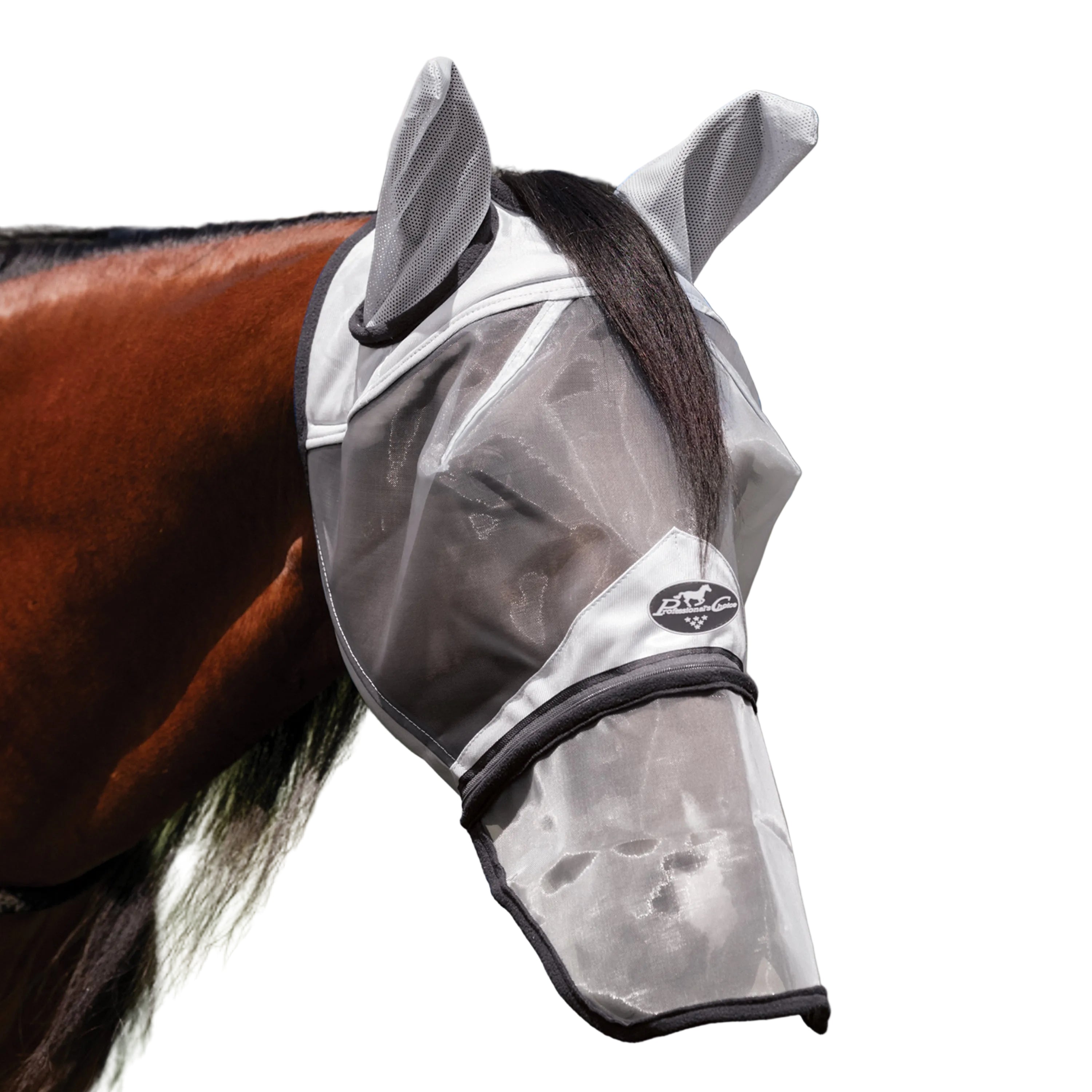 Masque à mouches Pro. Choice Grey avec nez fabriquée en maille légère avec protection UV. Conçue pour ne pas gêner le visage du cheval, ni ses yeux ni sa peau. Une polaire ultra-douce recouvre le front et la bordure pour un confort accru et pour prévenir les frottements. Les doubles sangles élastiques aux joues assurent un ajustement personnalisé optimal.