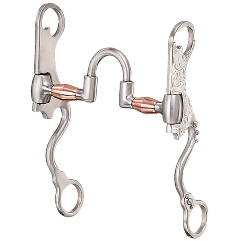 Mors de correction avec embouchure de 5 1/8". Branches de 7 1/2" en acier inoxydable. Confortable avec un effet modéré.