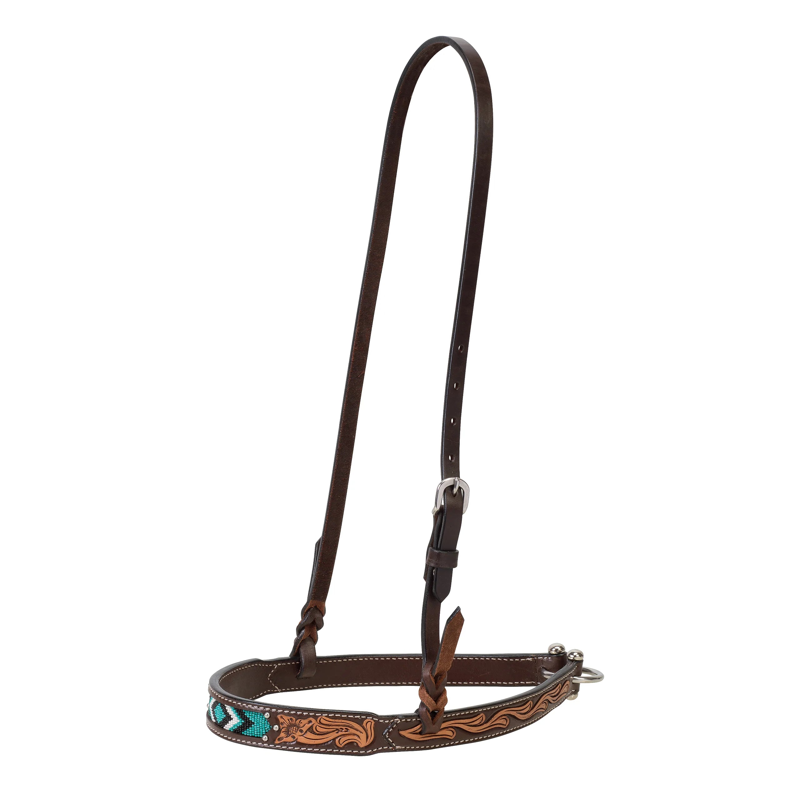 - Les incrustations de perles turquoise en forme de losange