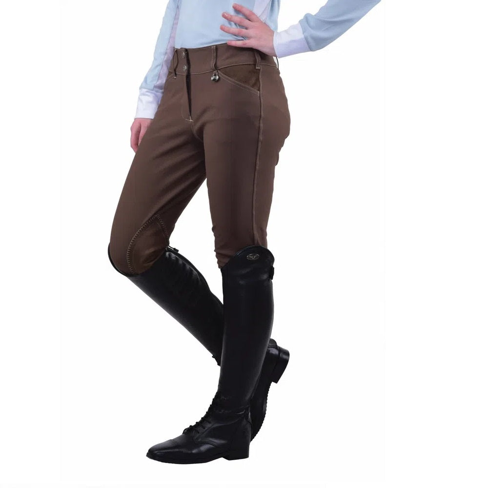 Pantalon Equine Couture pour femmes. Couleur chocolat. Knee patch en suède.