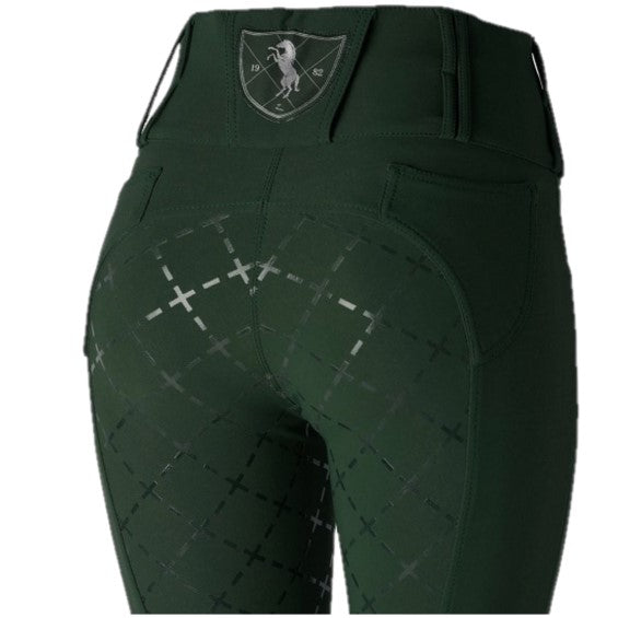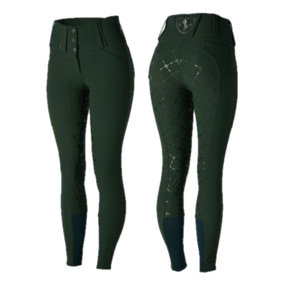 Ce pantalon d'équitation de grande notoriété Horze Desiree est doté d'une taille haute extraordinaire qui vous soutient et vous maintient dans une position parfaite. Il comporte aussi des passants de ceinture, ce qui le rend d'autant plus pratique. Ce pantalon d'équitation est doté d'un beau motif de silicone imprimé, pour le style et la fonctionnalité. Le tissu respirant conserve sa forme, repousse l'humidité et la saleté, vous permettant de toujours afficher un look soigné. La taille super haute vous soutient en selle et contient votre ventre à l'intérieur. Couleur Mountain View Green.