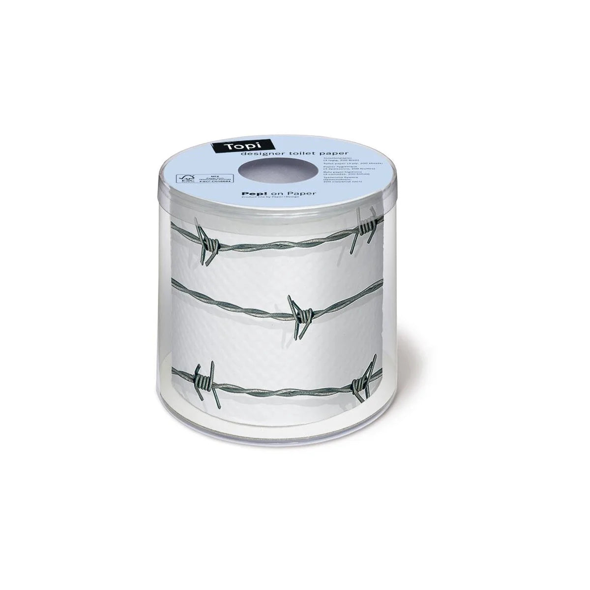 Papier hygiénique design de barbelés. 3 épaisseurs, 200 feuilles/rouleau, emballé dans une boîte cadeau en plastique transparent.