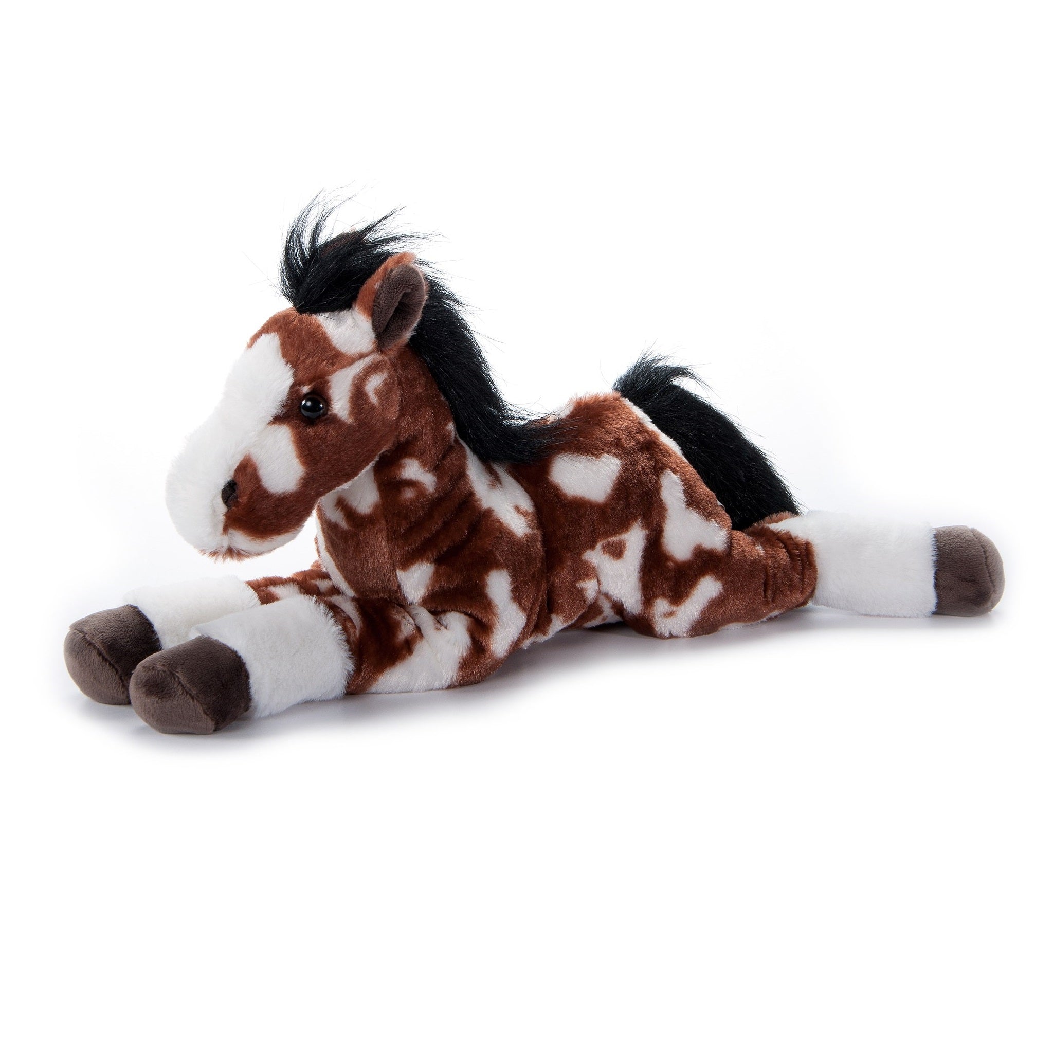 Peluche en forme de cheval Paint couché.