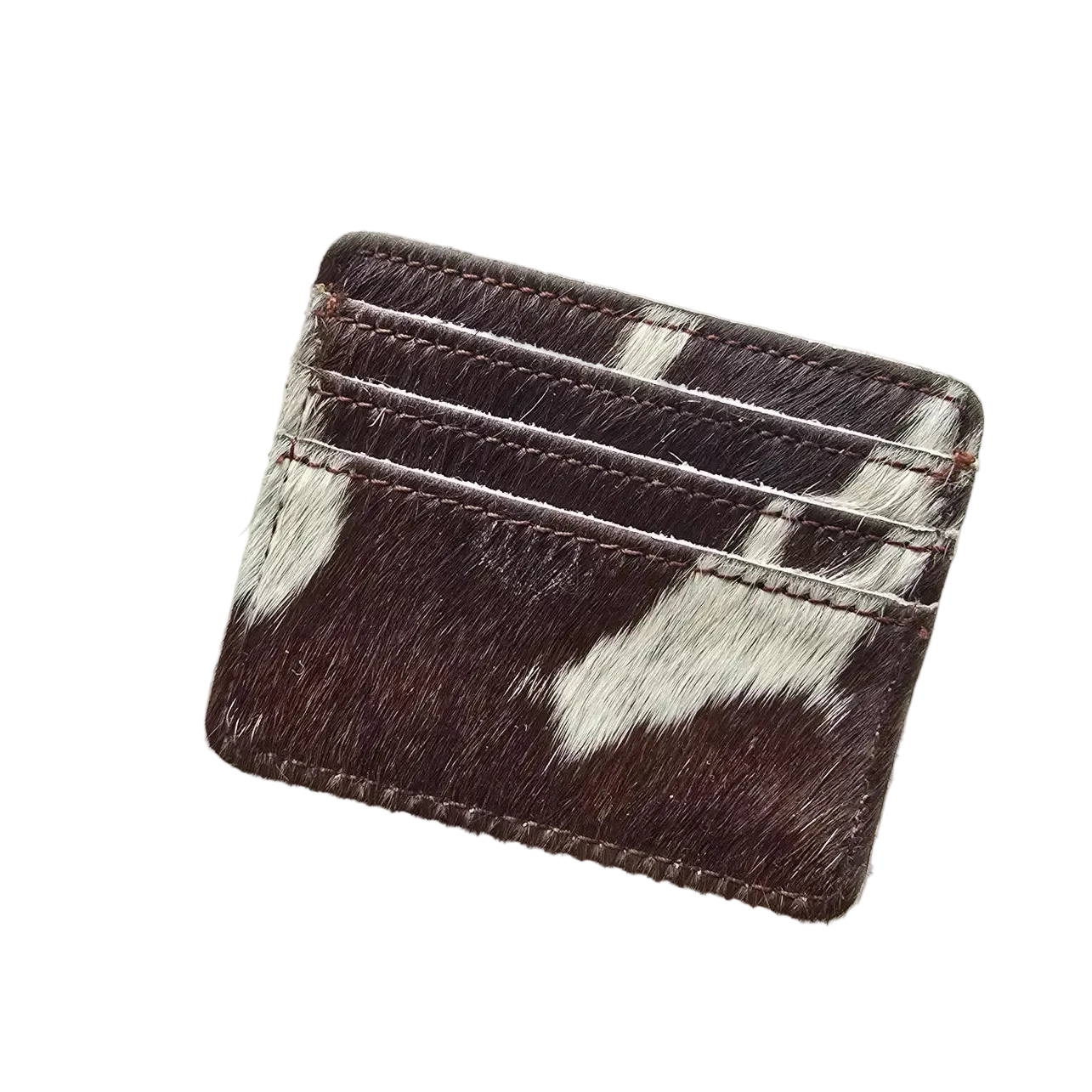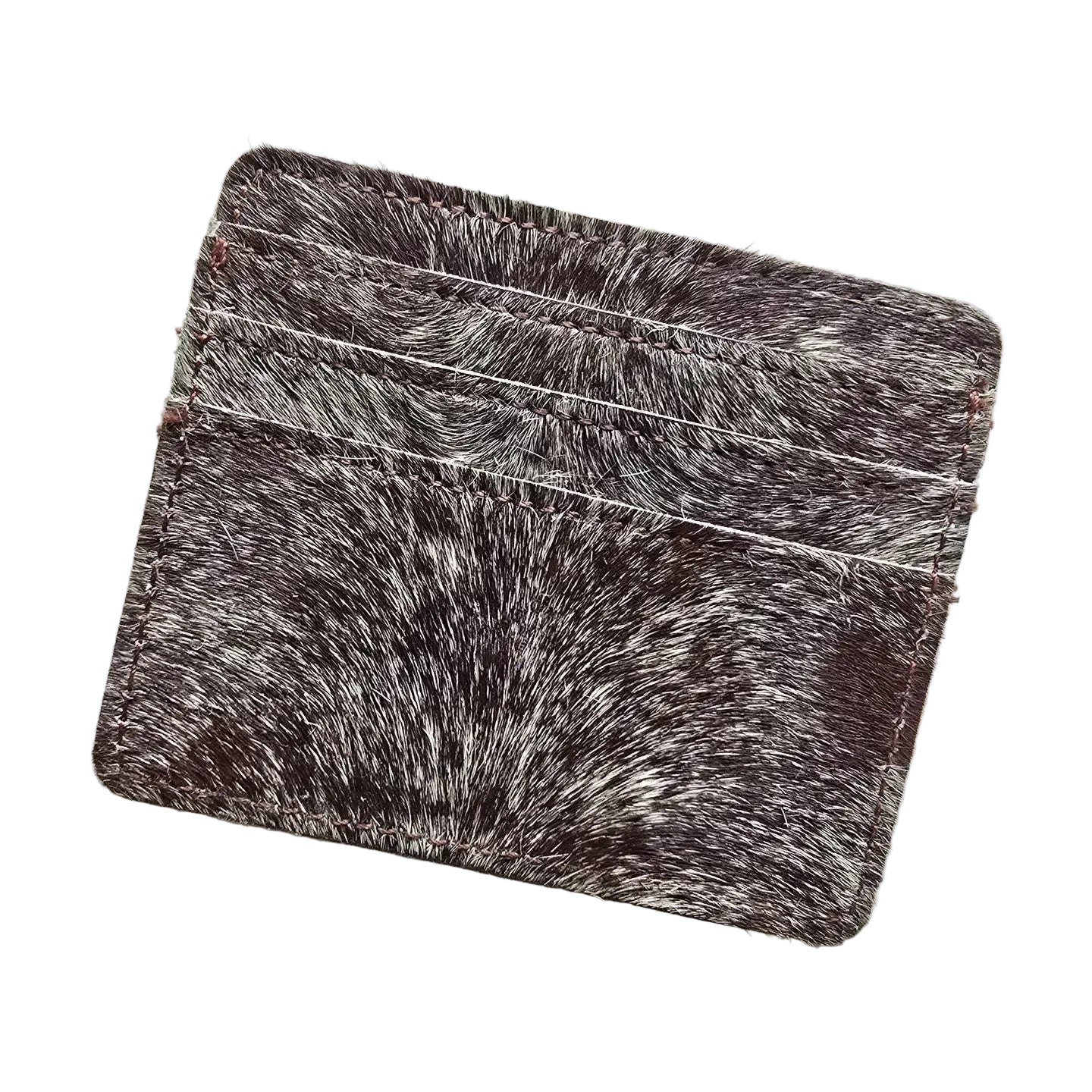 Fabriqué à partir de véritable peau de vache avec poils, ce porte-carte présente des marques naturelles uniques pour un charme rustique. Ce portefeuille ultra-fin se glisse facilement dans n'importe quelle poche tout en contenant vos essentiels quotidiens : 5 emplacements pour cartes et une fenêtre dédiée pour carte d'identité gardent tout organisé. Le design minimaliste et non doublé met en valeur la texture brute du cuir, vieillissant magnifiquement avec le temps.