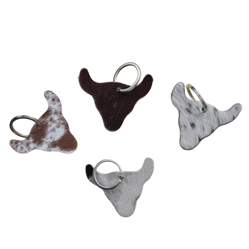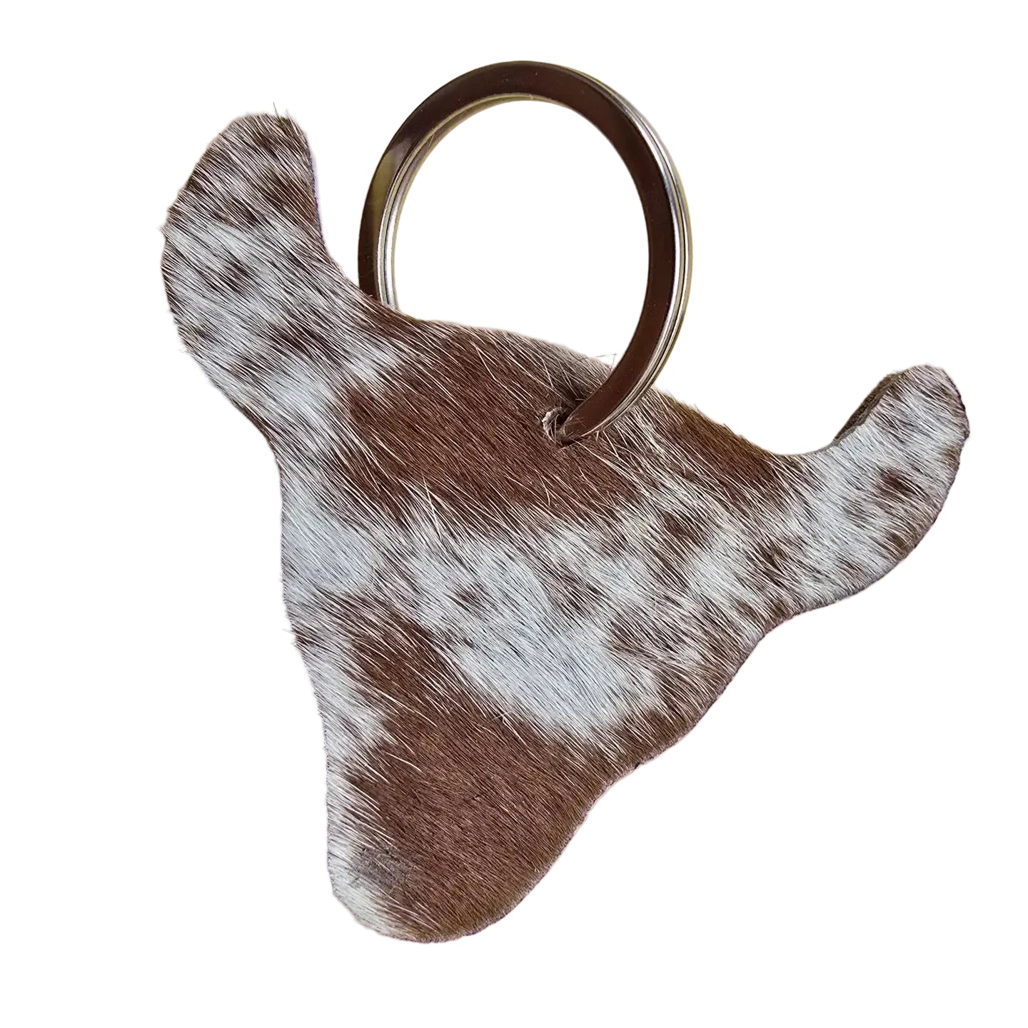 Porte-clés en forme de tête de vache avec poils de vache véritable. Dimensions : 2.5 x 2.5 po.