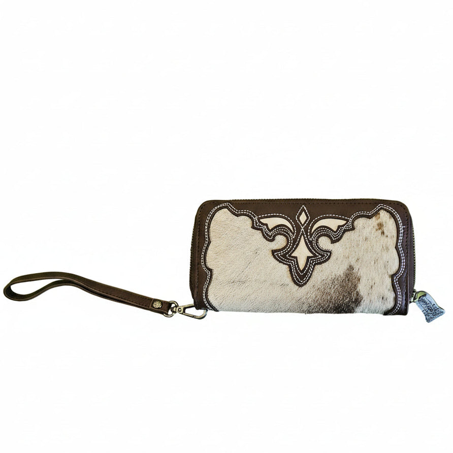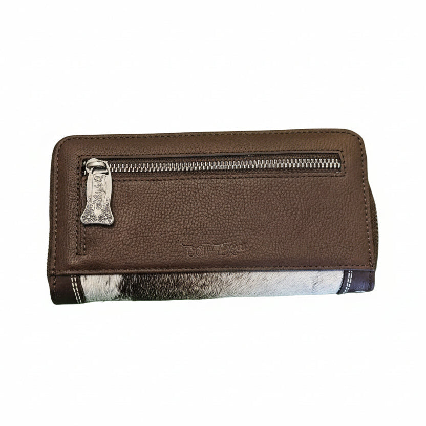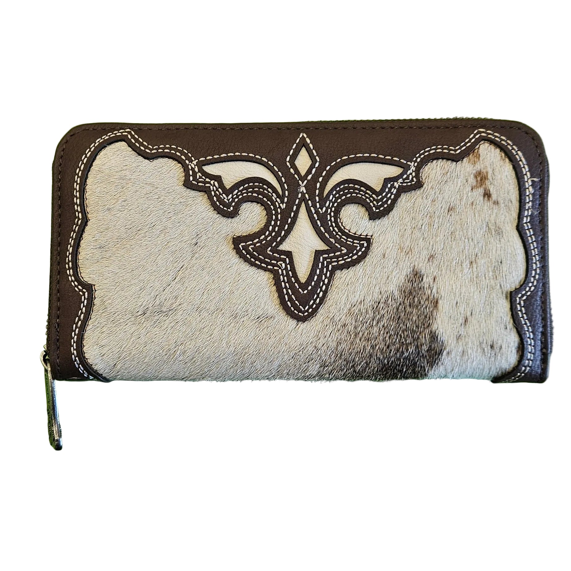 Couleur assortie. Comme il s'agit de véritable poil de vache, chaque portefeuille est unique et différera de la photo. Le poil de vache s'usera dans des conditions normales, particulièrement aux sections sujettes aux frottements.