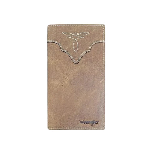 Portefeuille Wrangler en cuir Crazy Horse, avec surpiqûres décoratives sur le bout. Logo Wrangler embossé dans le coin inférieur droit.