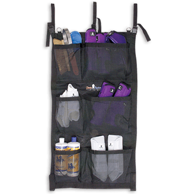 Un sac pratique fait pour être accroché pratiquement n'importe où. Idéal pour ranger tout les produits nécéssaires à votre cheval. De couleur noir.
