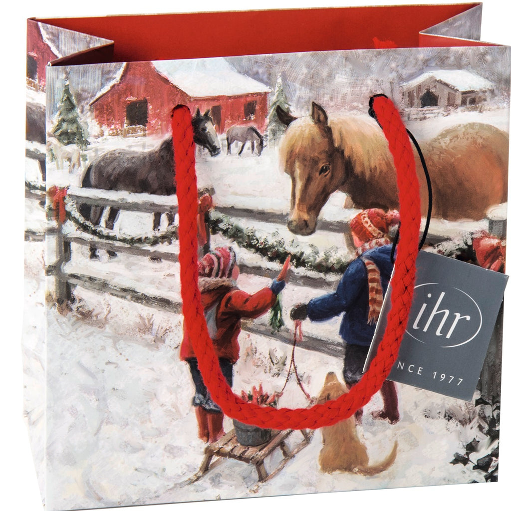 Petit sac cadeau Winter Horse. Dimensions: 5 1/2"x 5 1/2".