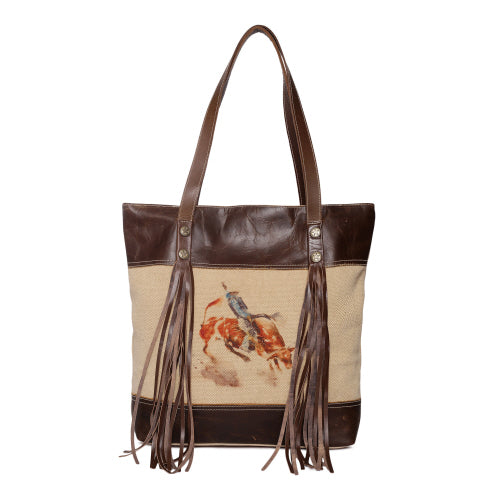 Sac à main Bull Rodeo Western avec franges de Cottn Curls. Dimensions: 15"x 13".