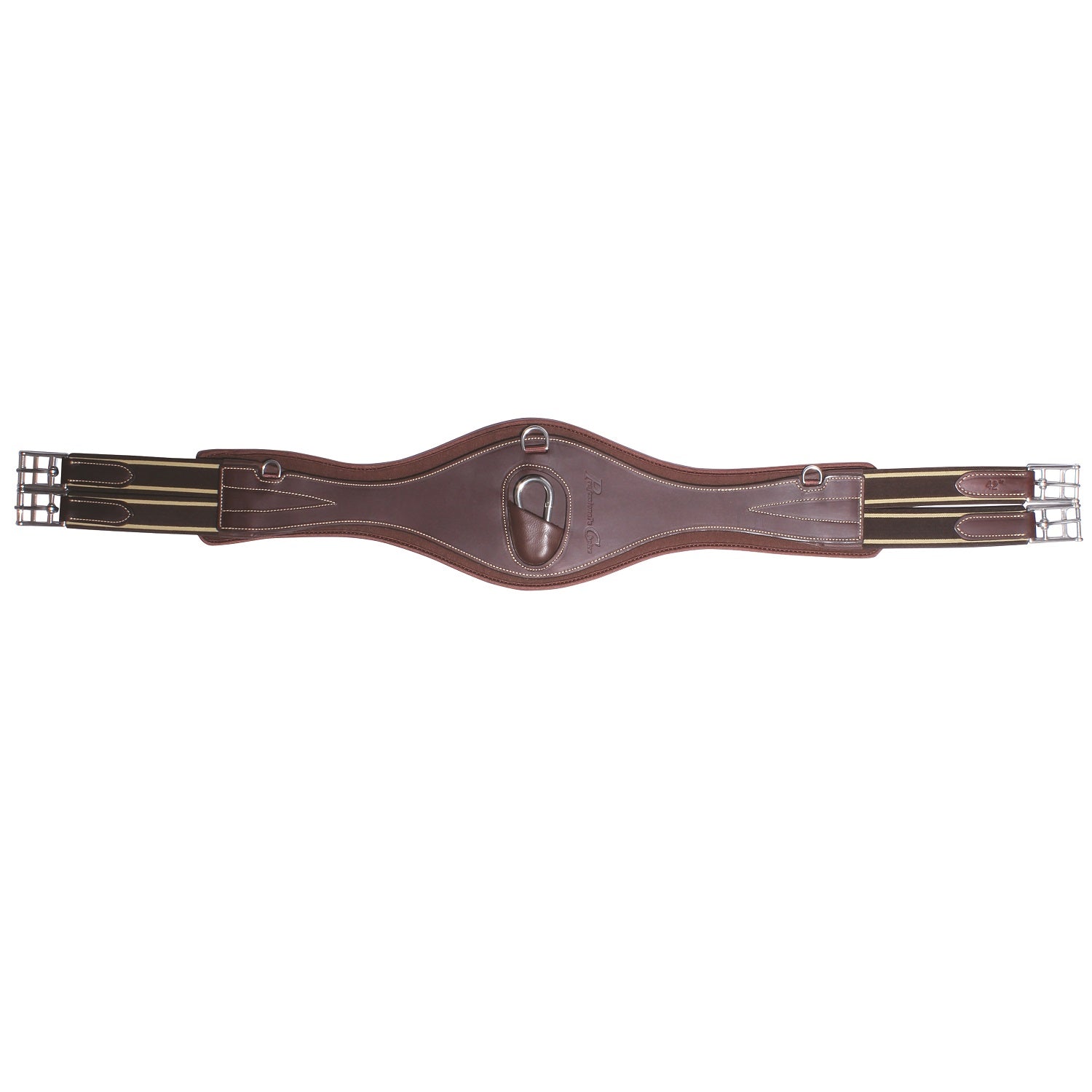 Les sangles sont la nouvelle norme en matière de confort et de technologie équine. La technologie VenTECH de marque déposée comprend une doublure en néoprène antidérapante ventilée qui s'adapte à votre cheval, permettant à la chaleur et à l'humidité de s'échapper. La doublure amovible en néoprène se détache de la sangle pour un lavage facile des mains. Les sangles profilées Professional's Choice sont conçues en pensant au cheval. La conception profilée permet à votre cheval une liberté de mouvement dans l'épaule et réduit les points de pression. La couche extérieur de la sangle en cuir véritable offre du corps à la sangle ainsi qu'un effet des plus chic.  Les anneaux en D et le mousqueton central sont compatibles avec les aides à la formation. La quincaillerie en acier inoxydable est durable et ne rouille pas, et le double élastique à chaque extrémité offre un ajustement confortable. Couleur: brun.
