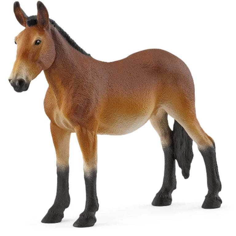 Quelle jolie mule ! Il a une fourrure brune, qui devient de plus en plus claire sur le ventre, et des pattes noires. La crinière courte et épaisse est également noire. Ses longues oreilles sont révélatrices : elles permettent de reconnaître immédiatement que son père était un âne. Mais il a hérité de sa mère cheval ses longues pattes. Quel bel animal !