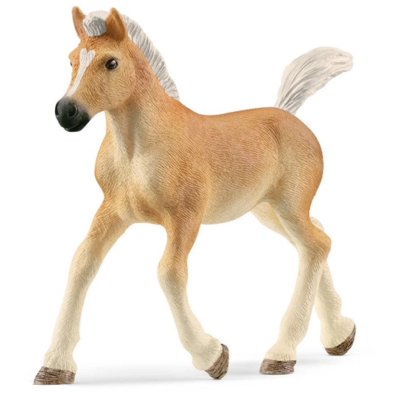 Ce petit poulain Haflinger de schleich® veut devenir un jour un cheval de concours Haflinger légendaire. Le beau pelage de couleur crème et la crinière blanche comme neige sont les caractéristiques de la race Haflinger. Faites de la place dans votre écurie de jouets pour chevaux Schleich® - cette figurine de poulain Haflinger est un ajout incontournable à votre collection.