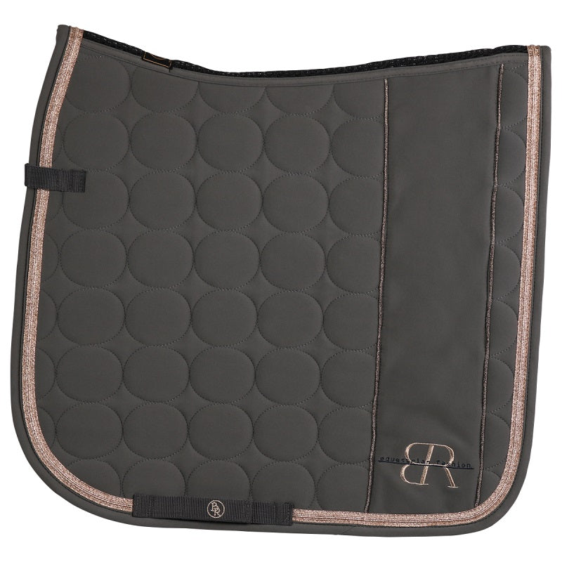 Tapis de dressage BR Renzo. Fournit un ajujstement parfait et une excellente respirabilité. Couture dorsale en forme anatomique. Possède un rembourrage qui absorbe les chocs. Doublue en polyester airflow. Couleur gunmetal. Grandeur full.