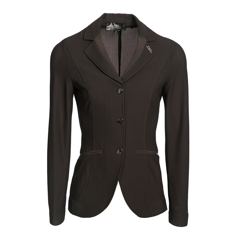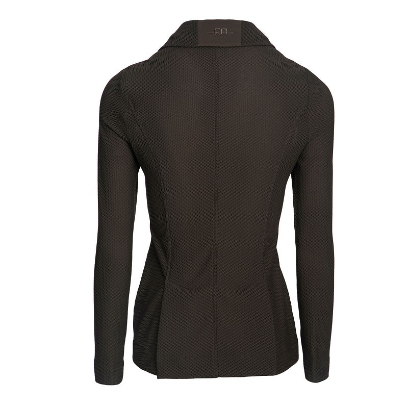Veston Alessandro Albanese pour femmes. Coupe ajustée et design italien classique, réalisée dans un tissu extrêmement léger mais pas visible à travers la maille! Vainqueur du prix de l'innovation BETA 2016, cette veste de compétition technique est super respirante mais intelligente pour les chaudes journées d'été. Possède un niveau de respirabilité exceptionelle. Avec fermeture à glissière et boutons interchangeables pour la multi discipline. Léger et sans doublure. Couleur Espresso.