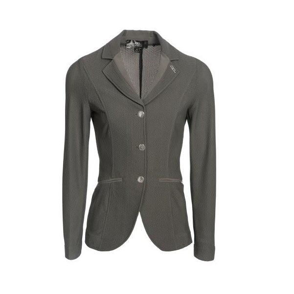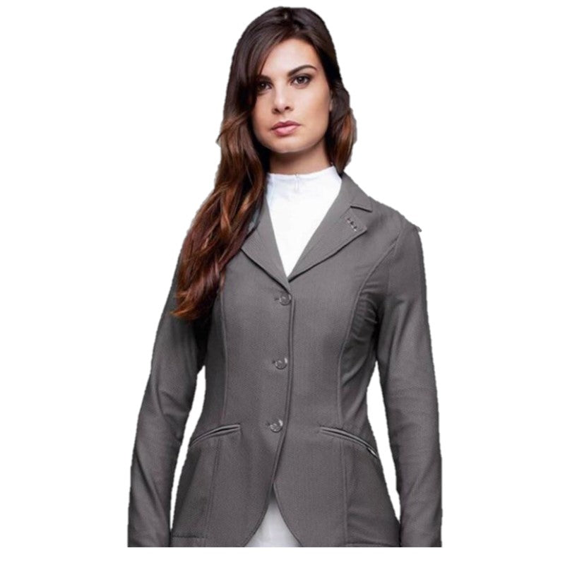 Veston Alessandro Albanese pour femmes. Coupe ajustée et design italien classique, réalisée dans un tissu extrêmement léger mais pas visible à travers la maille! Vainqueur du prix de l'innovation BETA 2016, cette veste de compétition technique est super respirante mais intelligente pour les chaudes journées d'été. Possède un niveau de respirabilité exceptionelle. Avec fermeture à glissière et boutons interchangeables pour la multi discipline. Léger et sans doublure. Couleur gris.